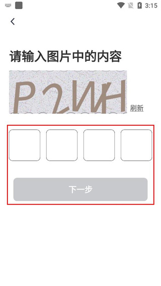 4、进入验证页面,识别图片中的字符内容,依次填入对应输入框后点击下一步。