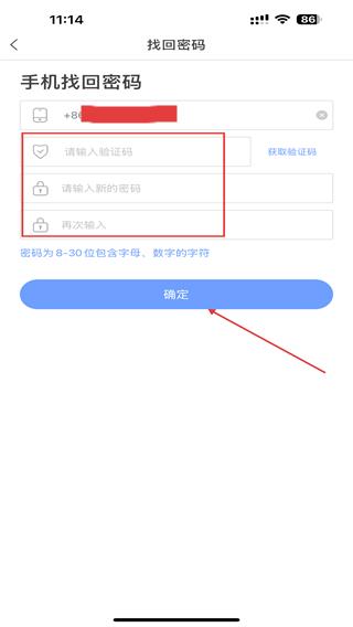 3、再次输入验证码以及新密码后,点击确定的按钮即可。