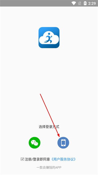 1、打开康云健康app的登录选择页面,在可选的登录方式中点击手机号选项。