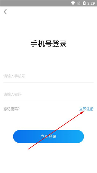 2、进入手机号登录页面后,找到页面中的立即注册选项并点击。