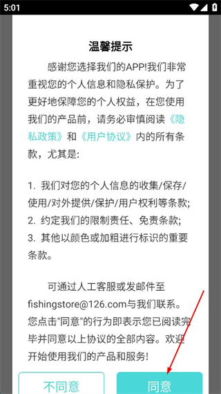 1、打开音频录音剪辑应用,在温馨提示弹窗中点击同意按钮,进入主页面。