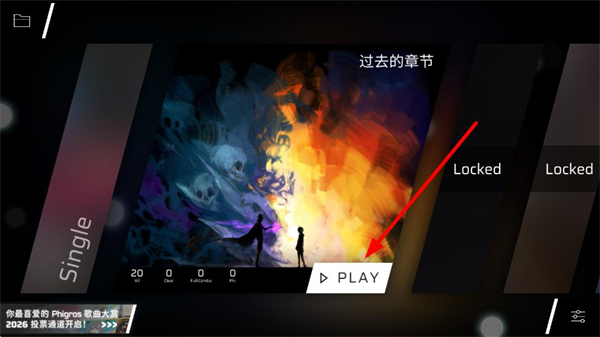 1、在包含章节封面的界面,找到下方的PLAY按钮并点击,即可进入对应歌曲的游玩关卡。