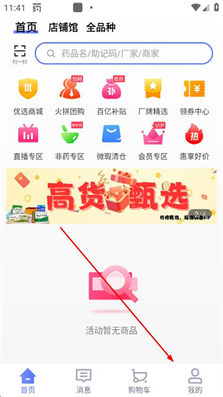 1、打开1药城app,点击底部导航栏中的我的选项。