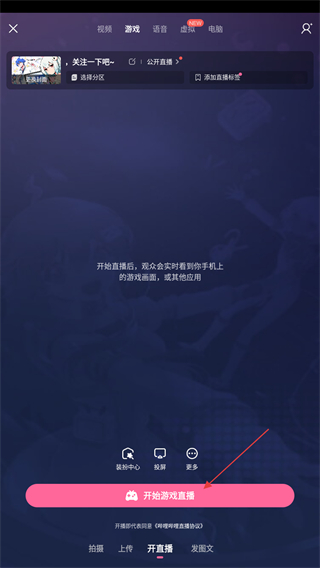 3、点击界面中的开始游戏直播按钮,即可启动直播。