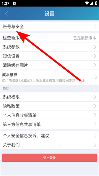 3、在设置页面点击账号与安全,进入账号相关设置的页面。