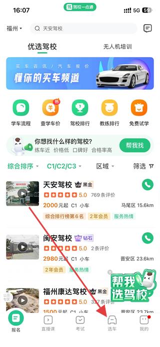 1、打开驾校一点通,点击页面底部导航栏的选车。