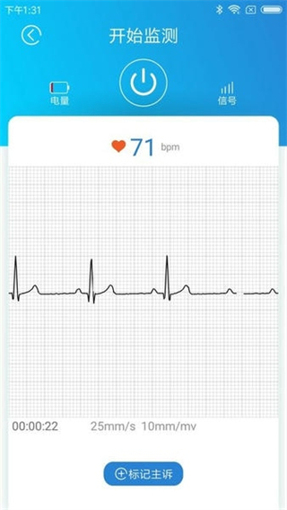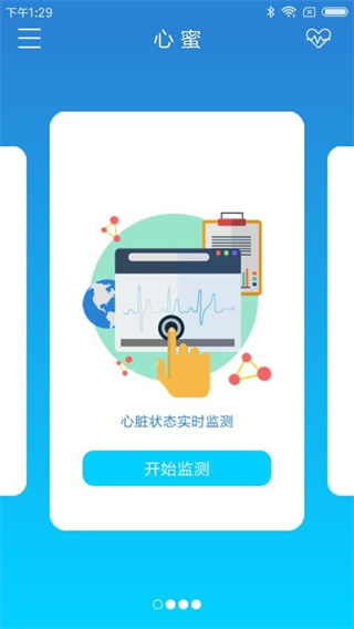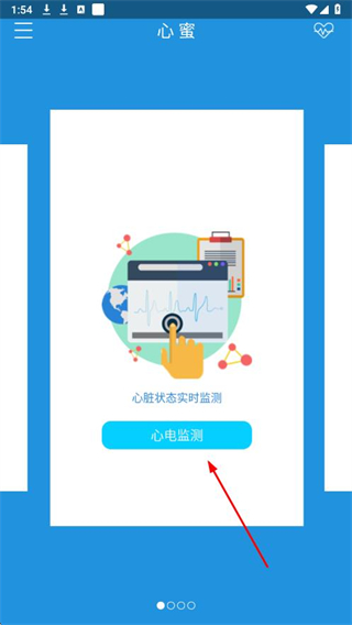 1、打开心蜜APP,点击“心电监测”按钮进入心电监测页面。