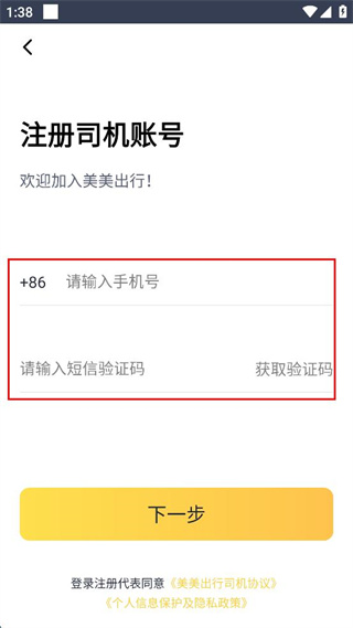 1、阅读司机协议和隐私协议内容,点击页面中的同意按钮进入账号页面。
