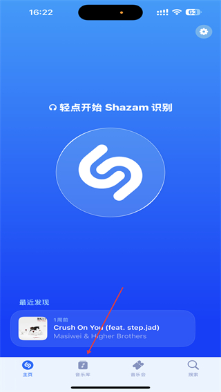 1、点击软件中间的图标就能识别音乐资源的内容,长按图标就能开始自动识别;