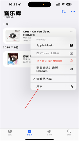 2、在音乐库的页面内,点击音乐右侧三个点的功能按钮。