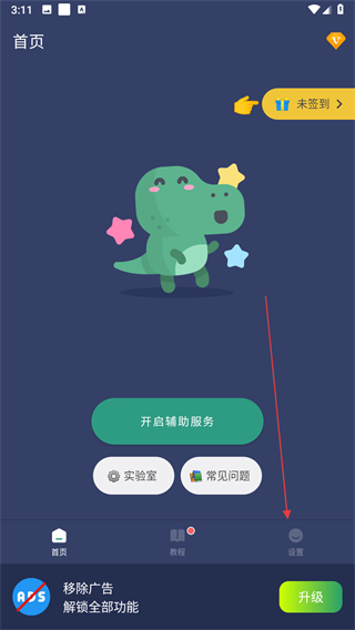 1、打开贝利自动点击器,点击导航栏的设置选项,进入设置页面。