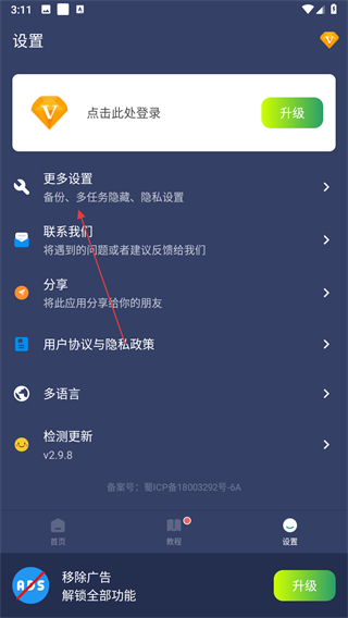 2、在设置页面中,找到更多设置选项并点击,跳转至更多设置界面。