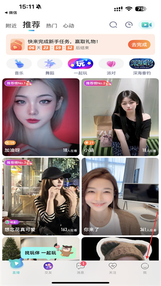 1、启动映客直播的App,点击底部导航栏中的我,进入个人中心页面。