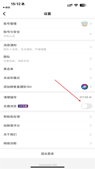 3、在设置界面里,找到无痕浏览对应的开关按钮,点击该开关即可开启。