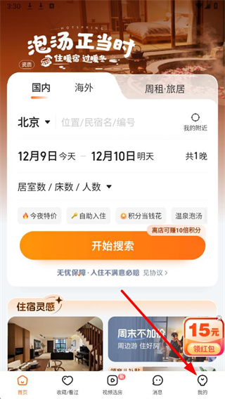 1、打开途家民宿APP,点击右下角我的进入个人页面。
