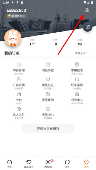 1、在途家民宿个人中心页面,找到右上角的设置图标并点击,进入设置界面。
