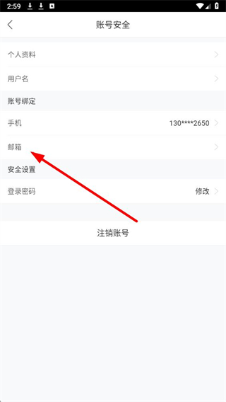 3、在账号安全页面,找到邮箱选项并点击,进入修改验证邮箱的页面,可进行邮箱地址的编辑。