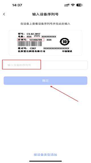 3、在输入框中填写设备机身上的序列号,点击确定的按钮。