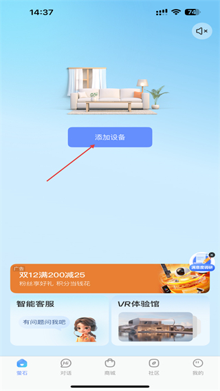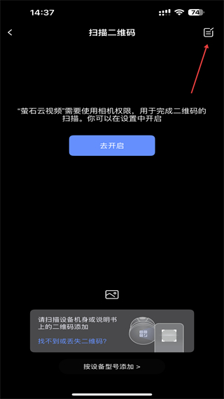 1、启动萤石云视频App,在页面中点击添加设备按钮。