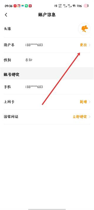 3、在账户信息界面找到用户名右侧的更改按钮,点击该按钮进入更改用户名页面。