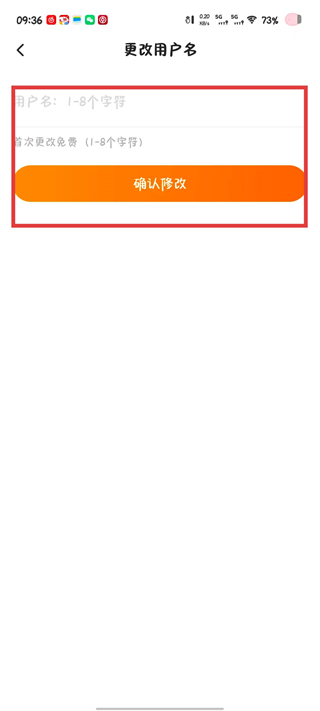 4、在更改用户名页面输入1-8个字符的新昵称,点击确认修改按钮完成昵称更换。