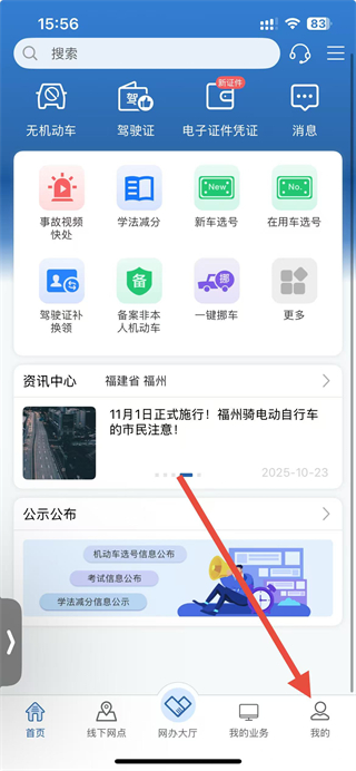 1、在交管12123主界面,点击底部我的选项,进入个人页面。