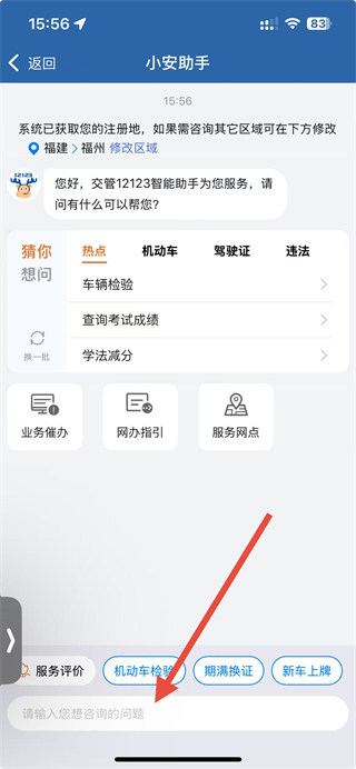 3、在小安助手界面,可直接在输入框咨询问题,也可通过分类选项快速获取服务。