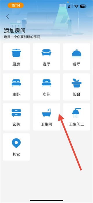 5、在添加房间界面,选择对应的房间类型,即可完成该房间的添加操作。