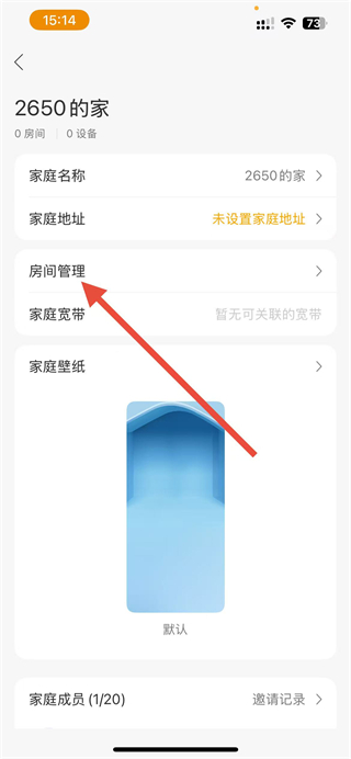 3、在家庭详情页面,找到房间管理选项并点击,进入房间管理界面,