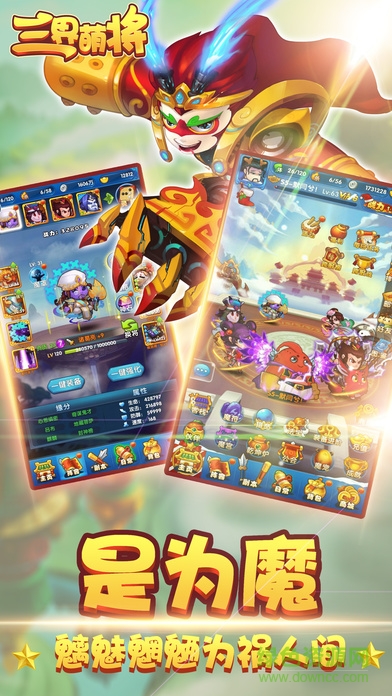 《三界萌将》是一款在三国故事背景下,横跨人、神、魔三界的神话手游。本游戏以简单而轻松的“无厘头”剧情为背景,独特的萌将设计,三国演绎中的武将,西游记中的神魔,封神榜中的神将,将其更“囧”更萌更搞笑的一面,展现给广大玩家。