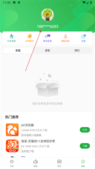 1、打开豌豆荚进入主界面,点击底部导航栏中的我的选项,进入个人中心页面。