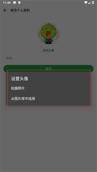 4、点击修改头像后选择拍摄照片或从图片库中选择,选定图片后完成头像更换。