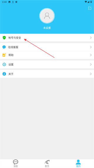 2、进入我的页面内,点击账号与安全的按钮。