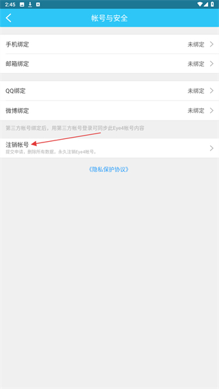 3、进入账号与安全的页面内,点击注销账号的按钮。