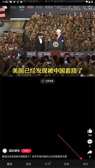1、启动好看视频的应用软件,点击右下角我的功能按钮。