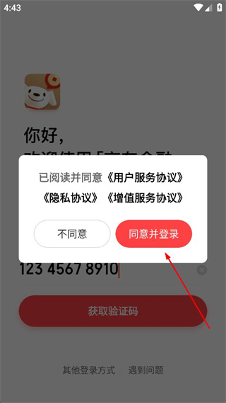 3、在弹出的协议确认窗口中,点击同意并登录选项,完成协议确认操作。