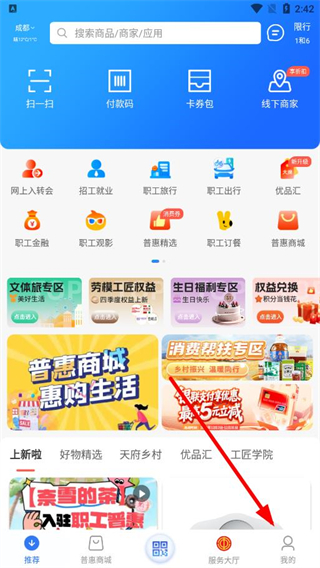 1、在职工普惠app推荐页面,点击右下角我的进入个人页面。