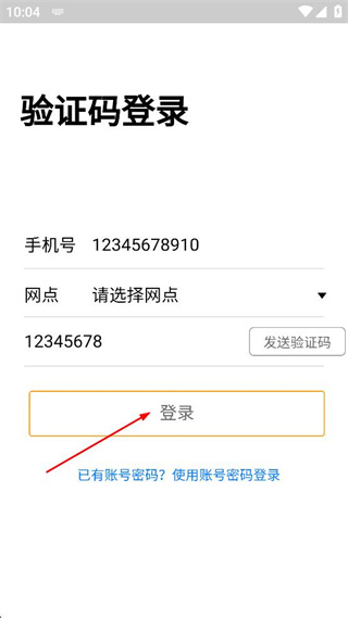 3、选择对应的网点信息,输入获取到的验证码,点击登录按钮完成账号登录操作。