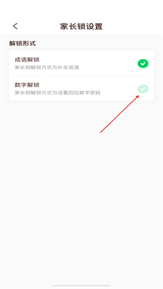 1、在家长中心页面,点击家长锁设置选项,进入解锁方式选择界面。
