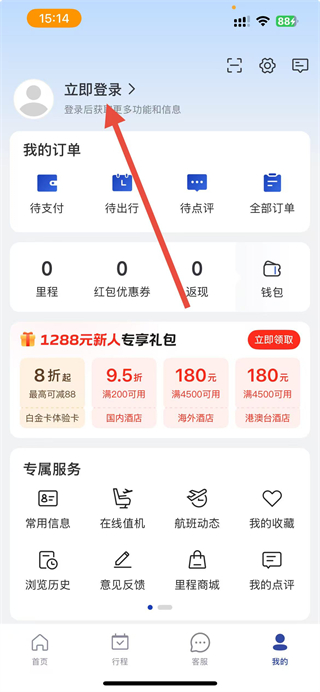 1、在艺龙旅行应用界面,点击底部我的选项,进入个人页面。