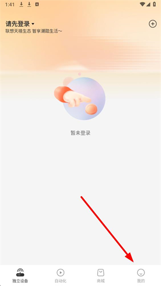 2、在我的个人页面,点击登录区域,进入登录联想账号界面。