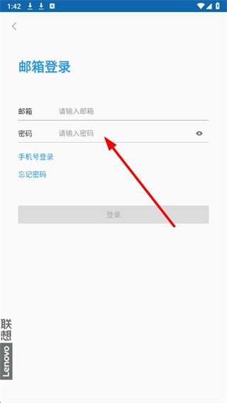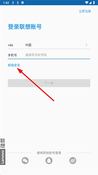 3、在登录联想账号界面,点击邮箱登录选项,进入邮箱登录页面。