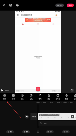 3、进入剪辑界面后,用户需点击底部工具栏的编辑按钮。