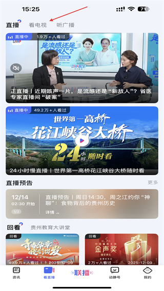 1、打开动静新闻App,点击底部导航栏看直播选项。