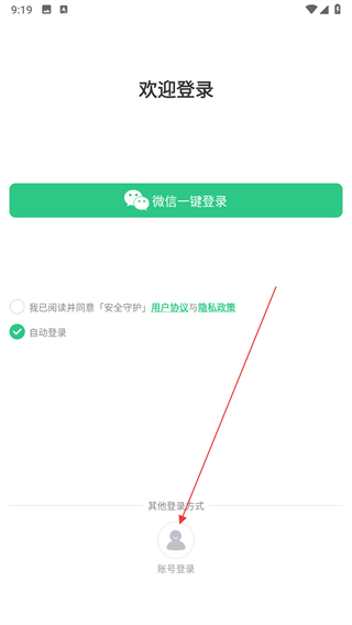 1、在安全守护,点击其他登录方式下的账号登录选项,进入账号登录界面。