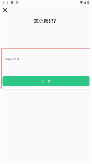 3、在忘记密码页面,输入对应的账号后点击下一步按钮,进入验证环节。