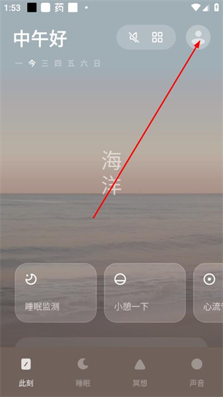 1、打开潮汐app的此刻页面,点击右上角的个人中心图标,进入个人中心页面。