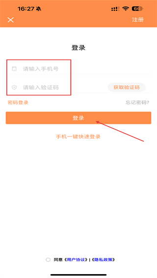 3、输入手机号、验证码后,点击登录的按钮即可完成。