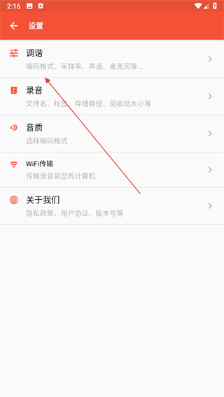 2、在设置页面中找到调谐选项,点击该选项进入包含编码格式的调谐设置界面。