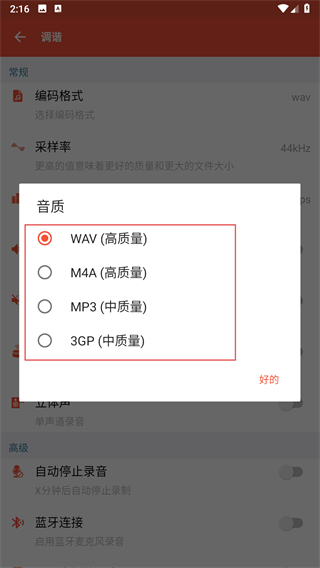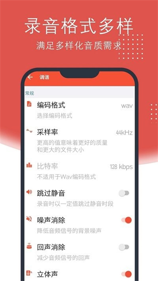 无损质量高清录音:四种音频质量、四种录音格式、八种采样率、七种比特率任意选择